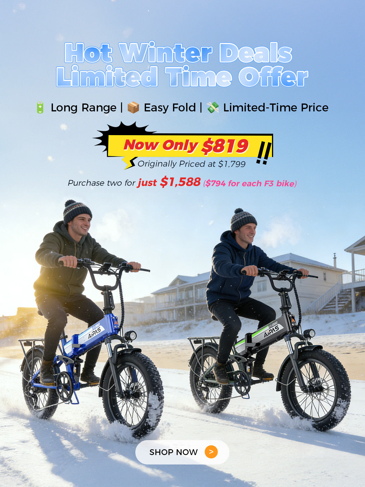 The M Series is without a doubt Aipas’ powerhouse. Now consisting of the M1 PRO and M2 PRO, it has delivered over 60,000 units between May and August following its recent upgrade. Each frame goes through a 10-step process including electrophoresis, anodizing, and heat treatment for maximum strength and durability. The M1 Purple stands out with an industry-leading “Chameleon” paint finish, crafted through a 7-layer process (primer, base, mid-coat, color coat, and clear coat). It changes color under different lighting conditions, making you truly one of a kind on the road. With dual suspension, 26x4.0 fat tires, a 17.5Ah high-capacity battery, and top speeds of up to 36 mph, the M Series is the ultimate companion for adventure.