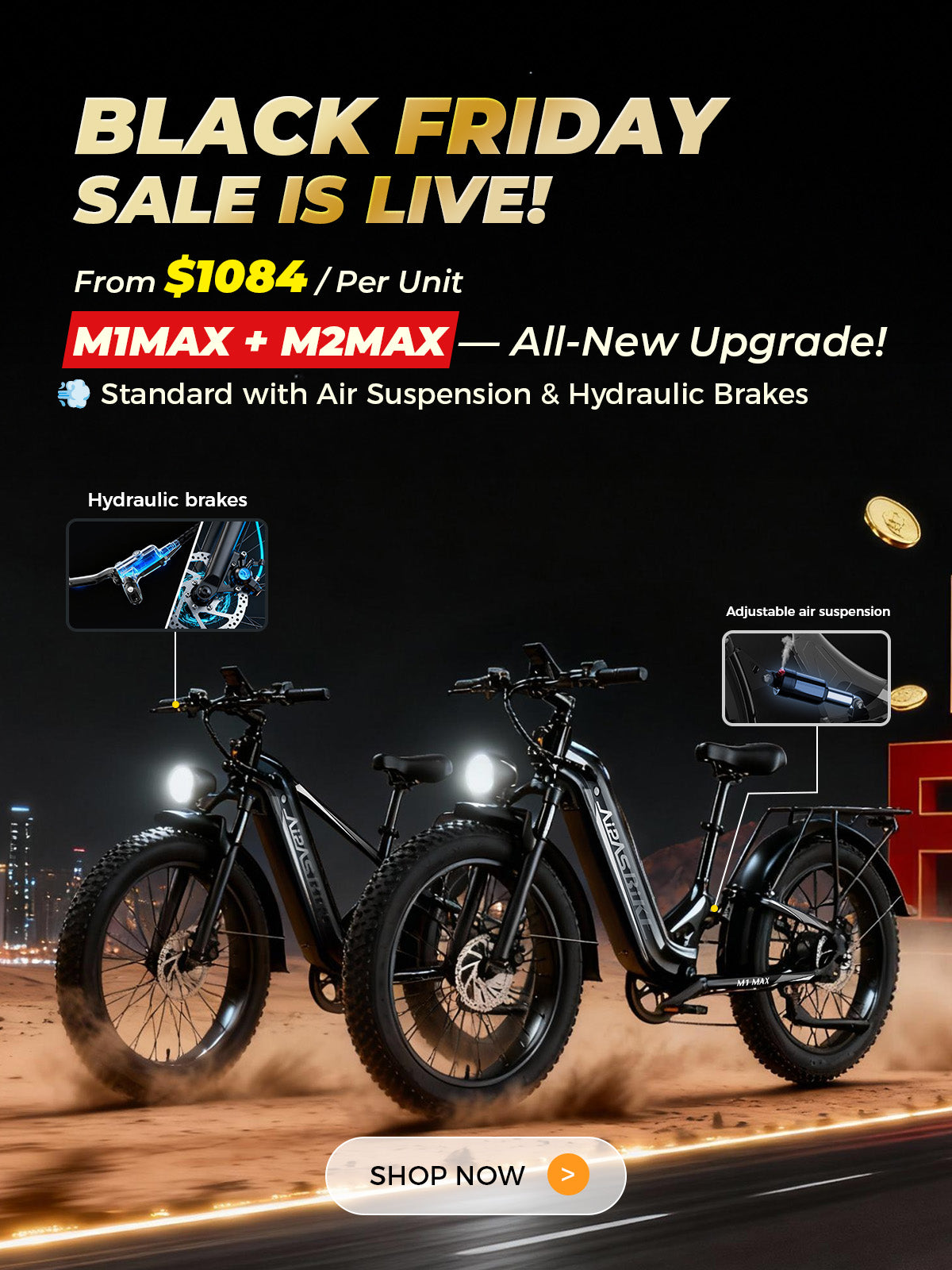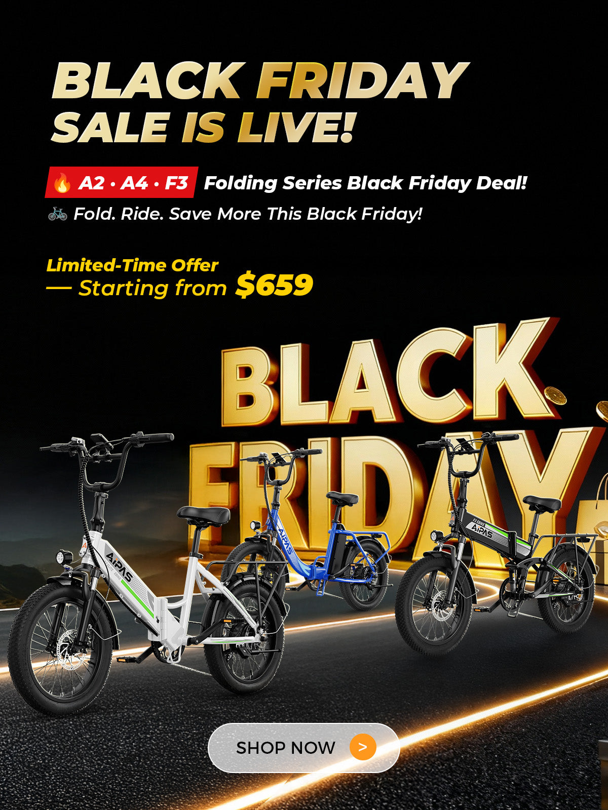 The M Series is without a doubt Aipas’ powerhouse. Now consisting of the M1 PRO and M2 PRO, it has delivered over 60,000 units between May and August following its recent upgrade. Each frame goes through a 10-step process including electrophoresis, anodizing, and heat treatment for maximum strength and durability. The M1 Purple stands out with an industry-leading “Chameleon” paint finish, crafted through a 7-layer process (primer, base, mid-coat, color coat, and clear coat). It changes color under different lighting conditions, making you truly one of a kind on the road. With dual suspension, 26x4.0 fat tires, a 17.5Ah high-capacity battery, and top speeds of up to 36 mph, the M Series is the ultimate companion for adventure.