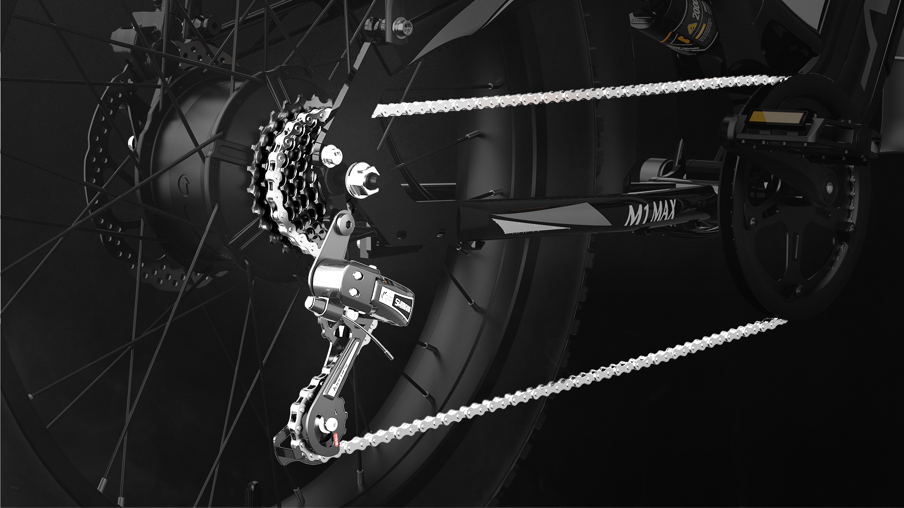 The Shimano 7-speed rear derailleur works seamlessly with the motor drive system, delivering smooth, intelligent power assistance. Each gear shift feels natural and responsive, letting you ride farther and faster with less effort.